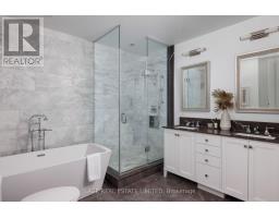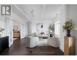 A rare opportunity to own one of the larger suites in the exclusive Sherwood by Huntington, a Tridel-built boutique residence poised at the edge of Lawrence Park. This 1589 sqft 2 bed plus den, 3 bath suite is tailored for those seeking quiet sophistication in a serene, park-like setting. Sweeping south-facing views over uninterrupted greenery and city skyline beyond, evoke the feel of Central Park from midtown Toronto.Through nearly $75K in custom upgrades, the designer Irpinia chef's kitchen is anchored by a custom oversized island with breakfast bar, Caesarstone Quartz counters, a full complement of Miele appliances and a built-in wine fridge tucked in the laundry rm. A Faber range hood with custom surround is an elegant top note to this gorgeous heart of the home. Throughout, engineered 5" White Oak Gotham hardwood stretches under 10' ceilings and 8' doors, flowing seamlessly from room to room. While this suite is a showcase of natural light, custom potlights elevate the ambient lighting. In the primary ensuite, radiant heat underfoot, marble finishes, and a freestanding Azzura Carrera tub create a spa-like retreat. All bathrooms showcase marble counters and flooring. The desirable split bedroom layout includes a virtually soundproof den, ideal for remote work or peaceful calls, offering a treasured versatile space. App controlled Crestron blinds throughout (including blackout in the primary), digital A/V wired speakers in each room (control hub ready). Two premium parking spots (one extra-wide) are located steps from a near-private elevator serving this quiet corner of the building. Residents enjoy hotel-level amenities: indoor saltwater pool & spa, sauna, fitness centre, party room, gardens, guest suites and 24-hour concierge. Steps to Sherwood Park trails, Bayview shops, Granite Club, Sunnybrook, and the coming Eglinton LRT. Privacy, sophisticated design, and effortless luxury in one of midtown Toronto's most distinguished addresses, this isn't to be missed (id:61594)
