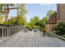 Located just minutes from downtown Toronto, High Park, The Kingsway, and the vibrant Bloor West Village, this impeccably maintained executive end-unit townhome is tucked away on a rare and expansive ravine lot, offering exceptional privacy and tranquil views. The highly sought-after 16-foot-wide model features a sleek, contemporary design paired with a warm and inviting atmosphere, all within a bright, open-concept layout. Inside, you'll find soaring 9-foot ceilings, gleaming hardwood floors, and generously sized principal rooms. The walkout basement adds functional living space, while the top-floor sundeck provides the perfect setting for a private bedroom retreat or home office complete with rough-in plumbing for added flexibility. On the main level, the sun-filled eat-in kitchen boasts granite countertops, a stylish backsplash, and stainless steel appliances. The open-concept layout flows seamlessly into the living and dining areas, making it ideal for both everyday living and entertaining. Step outside to the beautifully landscaped, ravine-backed backyard, a serene, private space divided into two thoughtfully designed zones. The newer deck flooring, ambient lighting, and natural surroundings create an ideal spot for summer evenings and quiet relaxation. This impressive home effortlessly combines urban convenience with the peaceful charm of nature, a rare gem not to be missed. (id:61594)