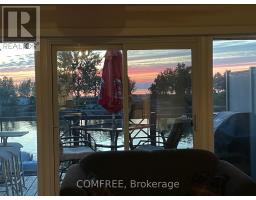 This property is truly a slice of paradise. This 2 story plus basement/garage townhouse on Nottawasaga River boasts breathtaking sunset views and spectacular views of Nottawasaga River, Georgian Bay, and Blue Mountain, Collingwood. Conveniently located only minutes walk to beach one, and close to shops, restaurants, grocery stores, Walmart & marina. Relax and entertain in this sought-after end unit . A boaters paradise.MAIN FLOOR: Spacious open concept design: living room, breakfast area, bright Ikea kitchen with stainless steel appliances (fridge, stove, dishwasher, microwave), granite countertops, oversize sink, and additional family room. Air conditioning and ceiling fans, oversize 30, 000 BTU gas fireplace. Pot lights and new LEDs throughout. Windows on 3 sides make this unit bright and sunny - custom window coverings throughout the house. Main floor sliding doors open to large river-front deck, gas BBQ hook-up, glass balconies for unobstructed views.UPPER LEVEL: large master bedroom with private balcony and river view, a full bathroom with jacuzzi tub/shower and heated floor, a second bedroom, and a linen closet. Air conditioning wall units in each bedroom and mirror double sliding closet doors with large closets and custom shelves.BASEMENT/GARAGE: full bathroom, open area laundry room, a separate room (den, bedroom, or storage), and inside-entry gas-heated garage with finished floors, opening directly to river-front.OUTSIDE: premium docking facilities directly on Nottawasaga river (close to widest section near mouth of river): 4-post 50FT aluminum docks, 10ft wide wooden boardwalk, additional personal parking spot in front of garage. Plus visitor parking. Brand new composite front porch and steps. (id:61594)