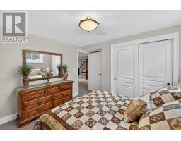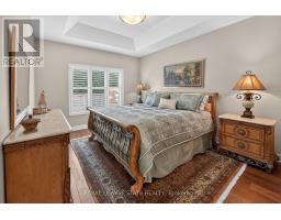 Stunning St. Davids Bungalow Townhome: Unrivaled Privacy & Master CraftsmanshipExperience maintenance-free luxury in this executive end-unit bungalow townhome, perfectly situated in the prestigious St. Davids community. From the moment you arrive, the stone exterior, interlock double drive, and professional landscaping set a sophisticated tone. The interior reveals over 2,200 sq. ft. of refined living space defined by cove ceilings, low-sheen hardwood, and California shutters. The chef-inspired kitchen features premium solid-surface counters, an expansive breakfast bar, and an abundance of cabinetry. Bathed in natural light from skylights and vaulted ceilings, the living room offers a cozy gas fireplace-the heart of the home. Retreat to the primary suite featuring a walk-in closet and private ensuite, or host guests in the airy front bedroom with its own vaulted ceilings. The fully finished lower level feels like an extension of the main floor, boasting large windows in every room, a spacious rec room, two additional bedrooms, and a 3-piece bath. Step outside to your private oasis: a large composite deck with an electric awning overlooking a serene, treed view. Low condo fees cover snow and lawn care, ensuring a lifestyle of pure relaxation. (id:61594)