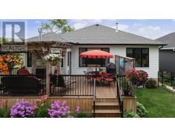 Immaculate Former Show Home in Creek Side Place This stunning 4-bedroom, 3-bathroom bungalow once the Medway Homes model offers 1,541 sq. ft. on the main level plus 1,278 sq. ft. of beautifully finished lower-level living space with large storage room. Ideally located beside open green space and a tranquil pond, this home blends luxury, privacy, and smart design in one exceptional package. Thoughtfully upgraded with over $200,000 in premium features, including an extended kitchen with added cabinetry, built-in coffee maker, microwave, and two-drawer fridge, recirculating pump, roughed in central vacuum. The bright sunroom with two-sided fireplace, tray ceilings, and oversized windows creates a warm, inviting atmosphere. Interior highlights also include Toto toilets, custom blinds, and a smartly designed laundry room that connects to the primary walk-in closet for seamless functionality. Step outside to a show stopping composite deck with pergola, three-sided privacy blinds, and a dog door for pet-friendly convenience. The fully fenced, professionally landscaped lot features a fire pit, outdoor shower, Generac generator, gutter guards, and a full irrigation system with 10 drip lines ideal for lawn, gardens, and hanging baskets. Shed has electricity. 30 amp breaker for RV. A rare bonus: the adjacent municipal lot is maintained and enhanced with mature trees planted (with approval) for maximum privacy and scenic enjoyment. This home is a true gem in Creek Side Place move-in ready, meticulously maintained, and built for indoor comfort and outdoor enjoyment. Quick access to downtown and beach is a foot bridge at the end of Creek Side that brings you out at Tim Horton's. (id:61594)