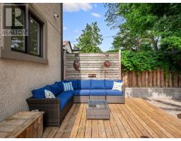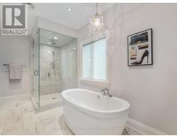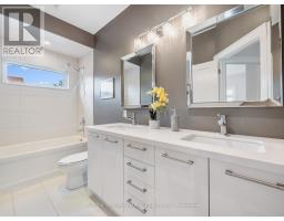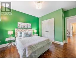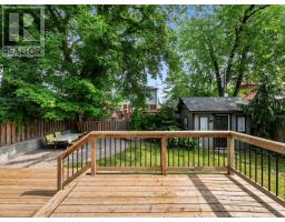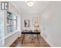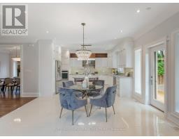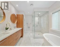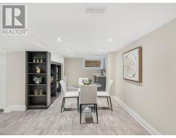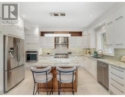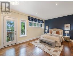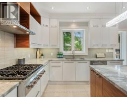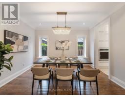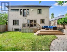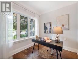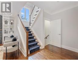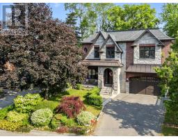 Nestled on a quiet, tree-lined crescent in East York, 1 Dustan Crescent is a stunning, fully renovated 4+1 beds, 5 bath residence that blends timeless elegance with thoughtful modern design. The stately exterior, finished in stucco and brick, is framed by manicured landscaping and a welcoming covered porch. Inside, the home opens to a bright foyer with tiled floors leading into spacious principal rooms with rich hardwood throughout. A front-facing office offers a perfect work-from-home retreat, while the formal dining room, adorned with modern art and a crystal chandelier, sets the stage for elegant entertaining. The heart of the home is an open-concept kitchen, breakfast area, and family room. The chef's kitchen features sleek custom cabinetry, quartz countertops, premium appliances including a gas range, and a striking waterfall island. The family room offers a cozy gas fireplace with a stone surround, built-in shelving, and direct access to the backyard. Upstairs, the primary suite is a luxurious retreat with a Juliette balcony overlooking the backyard, 2-way fireplace, a walk-in closet with custom built-ins, and a spa-like 6pc ensuite with a freestanding tub, double vanity, glass-enclosed rain shower. Three additional bedrooms offer unique charm, with features like porthole windows, bold accent walls, and elegant light fixtures, complemented by two stylish full bathrooms. The finished basement expands the living space with a large rec room, dining area, built-in kitchenette, private bedroom, 3pc bathroom with walk-in shower, and a dedicated office zone, perfect for guests, multigenerational living, or entertaining. A well-designed laundry room with mosaic backsplash and full-size washer and dryer adds convenience. Outside, the fully fenced backyard is a private oasis with dual-tiered decks, stone patio, lush lawn, mature trees, and a garden shed, ideal for summer gatherings. For families, enjoy the convenience of walking 2 minutes to a kids' playground/park. (id:61594)