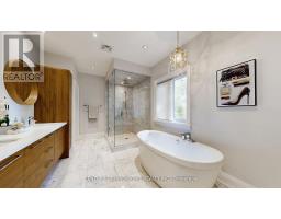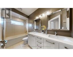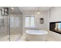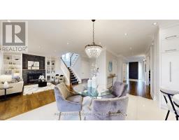 Welcome to 1 Dustan Cres. Approx. 14 yrs. old new Custom built contemporary 4+1 bedroom, 5-bath home rare 2 car garage w/ door to the house with beautifully maintained landscaping and a charming covered front porch. Inside, a bright tiled foyer opens to expansive 9ft ceiling principal rooms featuring rich hardwood floors. A front-facing sun filled office provides an ideal workspace overlooking a parkette. At the heart of the home lies the open-concept kitchen, breakfast area, and family room. The chef-inspired kitchen boasts sleek custom cabinetry, quartz countertops, premium appliances including a gas range, island with Wine chiller. The adjoining family room is anchored by a stone-surround gas fireplace, built-in shelving, and direct access to the backyard. Upstairs, the primary suite serves as a luxurious retreat with a Juliette balcony overlooking the yard, a two-way fireplace, a custom walk-in closet, heated floor spa-style 6-piece ensuite featuring a freestanding tub, double vanity, and glass-enclosed rain shower. Three additional bedrooms each showcase their own character-accent walls, and elegant lighting-accompanied by two beautifully designed full bathrooms. A stylish laundry room with mosaic backsplash , washer and dryer completes the 2nd floor for convenience. The finished basement with separate entrance adds exceptional versatility, offering a spacious recreation room, dining area, built-in kitchenette, private bedroom, 3-piece bath with walk-in shower, and a dedicated office space-ideal for guests, multigenerational/in law living, or entertaining. Outdoors, the fully fenced backyard is a serene private escape, featuring dual-tiered decks, a stone patio, lush lawn, inground sprinkler system, mature trees, and a garden shed-perfect for summer entertaining. Only 2 min walk to a park. Minute drive to DVP, a short drive to Downtown or Hwy 401 and close to future Ontario line. Don't miss this beautiful home where memories are waiting to be made. (id:61594)
