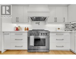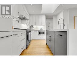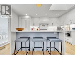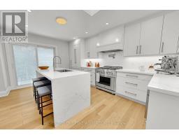Princess-Rosethorn | 1 Farningham Crescent, Etobicoke.One of Etobicoke's most established and architecturally cohesive neighbourhoods, Princess-Rosethorn is defined by its well-preserved, same-vintage bungalows and tree-lined streets. This fully renovated (2019) mid-century bungalow was conceived to complement its original character while bringing every system, surface, and finish fully into the present.The main floor features wide-plank white oak engineered hardwood, a custom open-riser staircase with solid oak treads, edgeless glass panels and hand-forged steel banister, and a foyer skylight that draws natural light deep into the home. The open living and dining area is notably generous for a home of this vintage, anchored by a gas fireplace and connected to the side-yard deck via sliding doors. The kitchen was designed for the serious home chef - custom cabinetry, expanded pantry, waterfall Caesarstone island, Dacor professional appliances including a 36" 6-burner range, commercial-grade hood, and European Franke fixtures including pot filler, oversized sink and designer faucet. Pre-plumbed for an espresso machine. Primary ensuite expanded to include a full double shower in large-format marble-look tile. Bedrooms are generously sized for a bungalow of this era.The fully rebuilt basement is divided into two distinct spaces with laundry and bathroom between them. The first features a complete kitchen with island, stainless hood and waterfall Caesarstone countertops, opening to a dining and seating area - self-contained and well-suited for multigenerational living, a nanny suite, or potential future rental conversion. The second is a bright, space currently used as a living room and workspace, with gas fireplace.Schools: Princess Margaret Jr PS | John G. Althouse MS | Martingrove CI | St. Gregory Catholic. Transit: Kipling GO, Islington Subway, TTC. Highways: 427/401/QEW/Gardiner. Airport: ~10 min to Pearson. (id:61594)