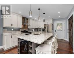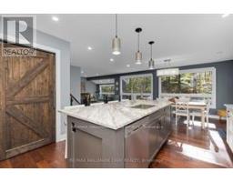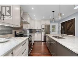 Welcome to the community of Sugarbush. This beautiful home is nestled in the woods. Completely updated and turn key with a flexible closing. Perfect home or chalet for that ski family. Gourmet kitchen with granite counter tops and stainless steel appliances. Built in wine fridge and wine rack in island. Pantry with barn doors and a walkout out to the lovely deck with glass railings. Dining area with sliding doors and big picture windows that bring in lots of light and a beautiful nature view. The primary bedroom offers a wall of built clothing storage. Two updated full bathrooms on each level. Upgraded electrical pot lights and dimmers on switches. The walk in ground level has a gas fireplace with stone surround and offers two more bedrooms. The Recreation room is welcoming and open with a gorgeous custom built staircase. This home will not disappoint and shows 10+. Sweet water park is located down the road. Walking and biking trails throughout the subdivision. In that catchment area for the new Horseshoe Heights elementary school in Horseshoe Valley. Shed for storage and lots of parking. (id:61594)