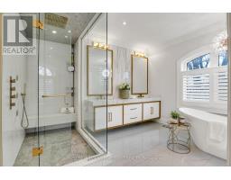 This exceptional custom built Eatonville residence delivers refined luxury, architectural presence, and everyday livability at a rare level. Upon entry, soaring ceilings, dramatic sightlines, and meticulous millwork establish a sense of scale and craftsmanship that carries throughout the home. Designed for both grand entertaining and comfortable family living, the main level flows freely from formal spaces to a stunning chef-inspired kitchen with butler's pantry, and elegant family room open to a covered outdoor living area and private, tree-lined, fenced yard. Upstairs, the home becomes a boutique retreat, anchored by a serene primary suite with its own private, west-facing terrace, while additional bedrooms and beautifully appointed bathrooms offer comfort and privacy for family and guests alike. The lower level extends the home's versatility with expansive ceilings, bright living spaces, ideal for extended family, older children, or sophisticated entertaining, all with a separate entrance offering seamless connection to the tranquil grounds and covered deck. With a massive double garage, exceptional attention to detail at every turn, and quick access to transit, amenities, and Pearson Airport, this is a rare opportunity to experience modern luxury living in one of Central Etobicoke's most established and connected neighbourhoods. (id:61594)