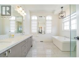 This stunning 4-bed, 4-bath detached home in Brampton East offers 2900+ sq ft of upgraded living space. With 10-ft ceilings on the main floor and 9-ft ceilings on the second, the open-concept layout is both grand and inviting. The gourmet kitchen features a quartz waterfall island, built-in oven/stove, and porcelain tiles. Hardwood floors throughout no carpet in the entire home. The second floor includes a laundry room with a sink and 4 spacious bedrooms, each with an attached bathroom. Additional highlights include modern chandeliers, 8 security cameras, and an irrigation system for easy garden maintenance. The fully interlocked backyard is perfect for entertaining, with spacious interlocking wrapping around the house and a driveway with no sidewalk. Located near major amenities like schools, parks, plazas, public transit, Hwy 427/407, and places of worship. Over $250k spent on interlocking, landscaping, and custom kitchen design. Move-in ready this home is a true gem! Book your showing today! (id:61594)
