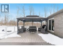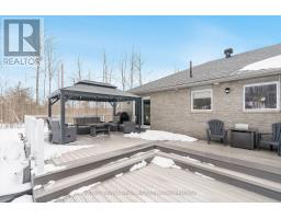 Top 5 Reasons You Will Love This Home: 1) Spacious raised bungalow situated on just over 1-acre in the desirable Simcoe Estates community, this property offers privacy, mature trees, and a fully fenced backyard, complete with professionally landscaped grounds featuring recent sod, a sprinkler system, hardscape walkways, custom landscape lighting, raised garden beds, and a custom firepit area with built-in seating, plus a large composite Deckorators Voyage Tundra deck with a gazebo creating the perfect outdoor entertaining space, along with a 3-car garage and garden shed for storage 2) The home offers a bright, open-concept layout, with a kitchen featuring quartz countertops, white cabinetry with pull-out drawers, updated stainless steel appliances, a tile backsplash, and a large eat-in area with a walkout to the deck, flowing into the family room with a gas fireplace, while hardwood flooring, crown moulding, and large windows add warmth throughout 3) Spacious primary bedroom delivering a relaxing retreat with a walk-in closet and private access to the deck, while the renovated spa-like ensuite features heated tile flooring, a custom glass shower with European fixtures and rain shower, dual vanity with custom organizers and a quartz countertop, and built-in cabinetry 4) The layout includes three main level bedrooms, with two additional bedrooms in the finished basement, which serves as a living suite featuring a recreation room, exercise room, a full bath, and wool carpet, ideal for guests or a semi-private space 5) Practical upgrades and an excellent location complete the package, including newer shingles, 200-amp service, a Generac generator, a high-efficiency dual-stage furnace, replaced windows including triple-pane at the front, new insulated garage doors, a triple-insulated garage, and additional parking, all near Highway 400, Craighurst amenities, trails, Horseshoe Ski Resort, and Vetta Spa. 1,895 above grade sq.ft. plus a finished basement. (id:61594)