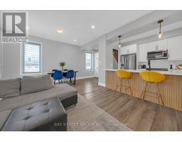 5-year-old executive end-unit townhome with 1,497 sq ft plus finished basement in central Barrie, close to top-rated schools, Georgian Mall, recreation centre, shopping, restaurants, and transit. Quality-built home with open-concept layout and 9-ft ceilings on the main floor. Kitchen features upgraded cabinetry, quartz countertops, backsplash, stainless steel appliances, and large centre island. Walkout to private interlocked backyard. Triple-pane windows, hardwood staircase, and upgraded light fixtures. Second floor offers three bedrooms, two bathrooms, and upper-floor laundry. Primary bedroom with walk-in closet, ensuite, and custom built-in wall unit with desk and storage drawers.Finished basement with a large recreation room and a 3-piece bathroom. Well-maintained home in a family-friendly neighbourhood. Pride of ownership. Shows like new. Move-in ready home in a convenient Barrie location close to schools, parks, shopping, and everyday amenities. Freehold townhome with POTL fee covering snow removal and common elements maintenance. (id:61594)