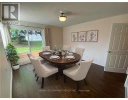 Welcome to the 1 Szollosy Circle in the vibrant 55+ community of St. Elizabeth Village. This charming, bright, well-maintained end-unit bungalow-town offers one-floor living with a neutral palette, laminate flooring throughout most of the home, and soft carpet in the primary bedroom for added comfort. Ideally located near the main entrance for easy access and just a short walk to the village's many amenities. The layout includes two rear-facing bedrooms with generous closets-one with sliding doors to a private deck overlooking green space, ideal as a bedroom, dining room, or office. The spacious bathroom features a low-threshold Mirolin walk-in shower with built-in seat and grab bar. Monthly fees include property taxes, exterior maintenance (roof, windows, doors, siding), grounds care, and full access to resort-style amenities: indoor pool, hot tub, gym, yoga and dance studios, pickleball court, walking trails, wellness centre, plus on-site café, pharmacy, church, doctors, physio, massage clinic, and salon. (id:61594)