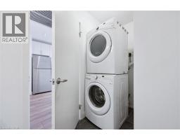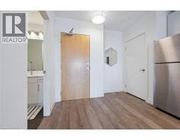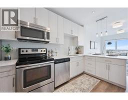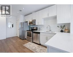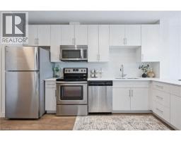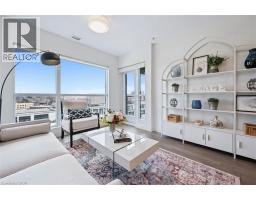 Welcome to One Victoria Condominiums in the heart of Downtown Kitchener. This bright and well-appointed 1 bedroom, 1 bathroom suite offers approximately 627 sq ft of thoughtfully designed living space with desirable east-facing exposure overlooking King Street and the neighbouring Kaufman Lofts, providing excellent natural morning light. Open-concept layout with floor-to-ceiling windows in the living area and a spacious bedroom with walk-in closet. Recent upgrades include natural stone countertops in the kitchen and bathroom, new sinks and faucets and new light fixtures, offering a clean, modern, turnkey finish. Additional features include wide-plank laminate flooring throughout, stainless steel appliances, in-suite laundry, and a 4-piece bathroom. Includes one parking space and storage locker. Building amenities include fitness centre, theatre/media room, rooftop terrace with BBQ, party room with kitchen, secure entry, indoor parking, bicycle storage, and car share. Unbeatable location steps to the LRT, Tannery District, tech hub, restaurants, and all amenities in Downtown Kitchener. Ideal for first-time buyers, investors, or those seeking low-maintenance urban living. (id:61594)