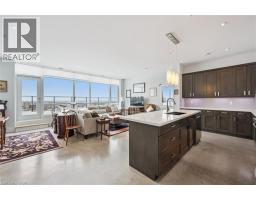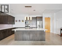 Welcome to this stunning 3-bedroom, 2-bathroom penthouse condo offering approximately 1,400 sq ft of modern urban luxury. Perched high above the city, this rare suite features a massive wrap-around balcony with sweeping views and even a gas hook up for your BBQ or fire table — perfect for entertaining, relaxing, and soaking in the downtown skyline. Inside, the unit showcases polished concrete floors throughout for a sleek, contemporary feel, complemented by custom cabinetry and premium finishes. The chef-inspired kitchen is equipped with quartz countertops, a gas stove, and a fridge with built-in water and ice, blending style and functionality seamlessly. Enjoy the convenience of upscale building amenities including a fully equipped gym, stylish party room, private theatre room, and a beautifully designed rooftop terrace complete with planters, BBQs, and outdoor dining areas. An exceptional opportunity to own a spacious penthouse in one of downtown Kitchener’s most sought-after buildings — steps to transit, tech hubs, dining, and entertainment. (id:61594)