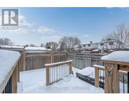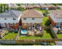 Welcome home to this beautifully maintained, move-in-ready property tucked away on a quiet, sought-after court in the heart of Courtice. Situated on an extra-wide lot and surrounded by mature trees, this home offers exceptional curb appeal and a peaceful, private setting.Freshly painted throughout and completely carpet-free, the home features a modern neutral white palette, updated light grey flooring, and all new designer light fixtures, creating a bright and stylish atmosphere from top to bottom.The spacious living and dining area is filled with natural light from the large front picture window, making it perfect for everyday living and entertaining. The updated white kitchen offers quartz countertops, a contemporary backsplash, stainless steel appliances, and a convenient breakfast bar. A walk-out from the kitchen leads to the private backyard retreat featuring a newer deck (2019) with privacy wall and hot tub - ideal for relaxing or hosting friends and family.The upper level features three generous bedrooms and two full bathrooms, including a primary suite with its own private 4-piece ensuite - a highly desirable feature for growing families and upsizers.The newly finished basement adds valuable living space with a versatile rec room and dedicated laundry area, perfect for a home office, gym, playroom, or media room.Additional highlights include a double-wide driveway with no sidewalk offering parking for four vehicles, a large shed, and side yard storage. Major updates include roof (2014) and deck (2019).Enjoy an unbeatable location just steps to Foxhunt Park at the end of the court, and close to shopping, transit, and the scenic Tooley's Mill Trails. With quick and easy access to Highways 401, 418, and 407, this home offers the perfect blend of lifestyle, convenience, and value.An exceptional opportunity for first-time buyers and upsizers looking for a turnkey home in a prime Courtice location. ** This is a linked property.** (id:61594)