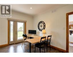 COUNTRY LUXURY! Welcome to 10 Eldale Road, a home abundantly offering 7 Beds, 6 Baths, 3 Kitchens, 15 Car Parking & a 1788 sqft All-Season Outbuilding. Located on a quiet dead-end street 3 mins from charming Downtown Elmira, as you approach the property you will be impressed by the all-brick construction, new metal roof (2023), new garage doors (2024), new eaves and soffits (2023), and significant recent investment into hardscaping and landscaping (2024 Earthscape). Heading inside, the home lavishly offers 5600+ sqft of finished living space, including a 2 bed in-law suite complete with separate laundry. The property's main level provides a sense of calm with 9' ceilings, bright newer windows (2016), a home office, and great room with soaring 18' ceilings and fireplace. The timeless chef's kitchen features solid wood cabinetry and a 10' island. Heading up the stunning central staircase you will find 4 additional good-sized bedrooms, two featuring their own ensuite baths in addition to a third 4-pc bath. The West-facing spacious primary bedroom offers views of peaceful fields and sunsets. Outside, the property's fully fenced 0.54 Acre lot deserves its own mention, featuring extensive interlock hardscaping, gas lines for firepit and BBQ, a 2-storey auxiliary building with 3 garage doors, hydro, plumbing and natural gas heating, and a refreshing 17 EX Aqua Sport Swim Spa (2024 Waterscape Hot Tubs & Pools). Additional features of this home include a 24kW full home generator (2024), owned tankless water heater (2023), new AC and furnace (2022), new water softener, iron filter, pressure tank, waterlines and sump pump (2023), Lutron Smart Lights (2024), Zero Gravity blinds (2024), security cameras & intercom (2023 JR Security), upgraded insulation (2023), and fresh paint throughout (2024). Finally, this location cannot be beat: a leisurely 5 min walk to Elmira Golf Club, a great school district, and a short drive to all amenities. Don’t miss the virtual tour & video! (id:61594)