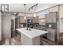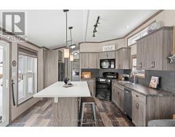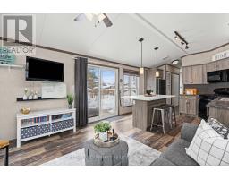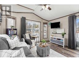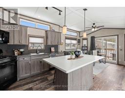 Welcome to this meticulously maintained custom modular home nestled within the sought-after Lost Forest Park Gated Community. Immerse yourself in the conveniences of this year-round community, which boasts a community centre, an in-ground pool, picturesque walking trails, and other amenities.This home features a charming wrap-around deck equipped with retractable screens, providing privacy and relaxation. The open-concept interior is adorned with 'driftwood' laminate flooring and double-hung windows, ensuring effortless cleaning. The kitchen features grey cabinets, a spacious centre island with Corian countertop that will comfortably accommodate family and friends, plus a convenient walkout to the deck.The great room exudes a bright and inviting ambiance and additional access to the deck. Conveniently located in the hallway is your in-suite laundry, HVAC system, and double closet for storage. The primary bedroom boasts a double closet with custom-built-ins, while the den provides an ideal space for a home office or creative pursuits. The Community Centre has something for everyone, including Dart Boards, TV w/Firestick & WiFi, Ping Pong Table, Games & Puzzles, Book Exchange plus large fridge and coffee maker. This is the perfect place to engage in a vibrant, active lifestyle. Secure this exceptional opportunity and experience the unparalleled comfort and convenience of this custom built modular home complete with metal roof. Minutes away from shopping, parks, golf, trails, Highways and all that the quaint Village of Waterdown has to offer. (id:61594)