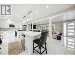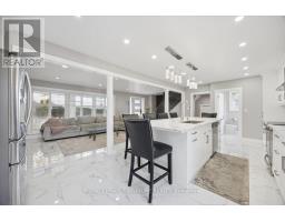 Welcome to Mitchell Corners in the heart of Clarington - where modern luxury meets timeless country charm. This beautifully renovated 5+1 bedroom, 4-bathroom home is tucked away on a quiet side street, offering the perfect blend of sophistication,functionality, and serene living. From the moment you arrive, the oversized wrap-around driveway - with space for 12+ vehicles- and stamped concrete walkway and porch create a warm, inviting first impression. Step inside to discover a pristine, open-concept main floor that seamlessly connects the kitchen, dining, and living areas - ideal for everyday living and effortless entertaining. At the heart of the home is the brand-new (2025) chef's kitchen, a true showstopper featuring an oversized quartz island with seating for eight, matching quartz countertops and backsplash, soft-close cabinetry with glass display panels, a built-in beverage centre and microwave, and sleek pot lighting to accent every detail. The spacious dining and living areas are anchored by a custom-designed TV wall unit, while 24x24 luxury tiles flow throughout the main level, transitioning to new vinyl flooring in the fully finished basement - offering style and durability. Upstairs, a striking glass-panel staircase framed by a fluted accent wall and crowned with a grand chandelier adds a touch of refined elegance and warmth. All four bathrooms have been thoughtfully renovated with contemporary fixtures and quality finishes, and a fresh coat of paint throughout enhances the home's bright, airy ambiance. Enjoy peace of mind with a new furnace and AC (2022), upgraded lighting throughout the home,convenient upper-level laundry, and ample space ideal for large or multi-generational families. This move-in-ready home is a rare gem in Mitchell Corners - offering the best of both worlds: elevated, modern design in a peaceful, country setting just minutes from highways, amenities, and top-rated schools. (id:61594)