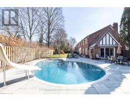 Nestled on a quiet cul-de-sac in prime Thornhill, this exceptional Tudor-style residence sits on a rare pie-shaped lot widening to approximately 145 feet at the rear, offering a unique opportunity in the sought-after Bayview Glen community. Lovingly maintained by the same family for 47 years, this 5-bedroom home presents incredible potential to move in, update, or build your dream home on a premium lot. Offering nearly 4,500 Sq. Ft. above grade, the home features a grand foyer, sun-filled principal rooms, formal living and dining rooms, and a spacious family room ideal for everyday living and entertaining. The family-sized Downsview kitchen is equipped with granite countertops, centre island, and a bright breakfast area with walkout to the backyard. A main floor library provides an ideal home office or study, while the second-floor laundry room adds everyday convenience. The expansive primary suite offers his and hers walk-in closets and separate ensuite bathrooms, creating a private retreat. The finished lower level features a recreation room with wet bar, cedar sauna, in-ground whirlpool, and walk-up-ideal for entertaining or extended family living. The home also includes a built-in elevator, dual-zone heating and cooling, standby generator, and heated garage, reflecting pride of ownership and thoughtful long-term functionality. The private backyard is beautifully landscaped with mature trees, offering both ample green space and a Todd Pools concrete in-ground pool-perfect for relaxing, entertaining, and family enjoyment. Located just minutes to Bayview Glen Golf & Country Club and surrounded by prestigious homes, this is a rare opportunity to secure a premium property in an established and highly desirable neighbourhood. Ideal for growing or multigenerational families seeking space, flexibility, and long-term value, this home offers a compelling combination of comfort and potential. A rare offering combining location, land, scale, and long-term potential. (id:61594)