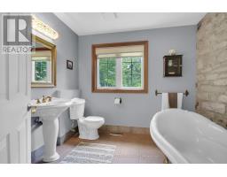 This extraordinary stone home sits on a breathtaking 13.47 acre property with approx. 363 feet of pristine waterfront on Mississippi Lake. This one of a kind home and property have been significantly and thoughtfully renovated and restored since purchase. The owners respected the unique architectural details, original materials, and distinctive features that reflect the home's history and construction era while updating to allow for modern conveniences. Every room offers picturesque views of the beautifully landscaped grounds. A spacious addition includes a sun-filled family room, eating area, laundry room and chef's kitchen with custom cherry cabinetry. The stunning stone and woodwork has been restored and are complemented with three impressive fireplaces, adding warmth and charm. A formal dining room, extensive living room, den and three piece bath round out the main level. Upstairs are three bedrooms plus a den - currently used as a fourth bedroom - but would make a beautiful office or nursery. Primary bedroom has a large walk-in closet. Soak away the day in the cast iron clawfoot tub. Enjoy your morning coffee on the covered porch overlooking the water. Out-buildings include an oversized two car garage with workshop and loft for storage. Bunkhouse with gas fireplace and four custom bunks. Waterfront screened gazebo with large deck. Utility shed to store all your water toys. Greenhouse with power and water for gardening enthusiasts. Two docks and your own boat launch make this the perfect summer gathering spot. Located just minutes from Carleton Place this offering combines convenience with the serenity of country living. A detailed property information sheet is available. Don't miss out on this rare opportunity. Book your private viewing today and experience this incredible retreat firsthand! (id:61594)