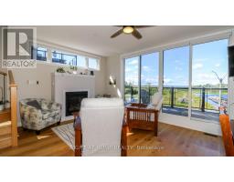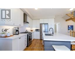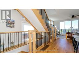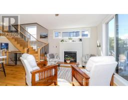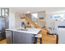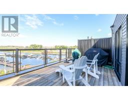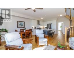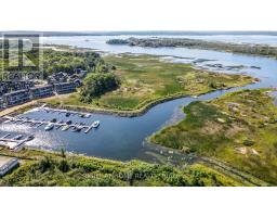 Rare End Unit Townhome with Georgian Bay Views. Welcome to this stunning rare end unit townhome located in the sought-after Residences of Oak Bay Golf & Marina Community. Perfectly positioned with captivating views of Oak Bay Marina and Georgian Bay, this three-year-old brick and vinyl home combines style, comfort, and resort-style amenities. Main Level: Double car garage, parking for two more cars in the driveway, with additional storage closet. Inside Tiled entry with coat closet and utility room. This Townhome has Hardwood flooring and power window blinds throughout. The Bright family room with sliding door walkout to patio overlooking the marina and Georgian Bay. Convenient two-piece powder room with tiled floors. Second Level: Open-concept living and dining room with propane fireplace and walkout to a spacious deck with spectacular western sunsets over the Bay. Modern kitchen featuring quartz countertops, slide-in propane stove, chimney exhaust fan, stainless steel inset sink, and island with breakfast bar. The Primary Suite is a spacious bedroom with a floor-to-ceiling walkout to a private balcony facing east for sunrise views. A Walk-in closet and luxurious 4-piece ensuite with soaker tub and glass walk-in shower. Third Level: The hallway has a walkout to another open deck with panoramic marina and Bay views. Two additional bedrooms: one overlooking the marina and Georgian Bay, the other facing east for morning sun. A 3-piece bathroom with tiled floors and glass walk-in shower. The Stacked Laundry Closet provides easy access. Lifestyle & Community: Enjoy resort-style living with access to an award-winning 18-hole golf course, clubhouse with outdoor pool, and just steps to the marina with boat slips for easy access to Georgian Bay. This immaculate, move-in-ready townhome offers a rare combination of modern finishes, breathtaking views, and community amenities, making it the perfect year-round home or cottage-country retreat. (id:61594)