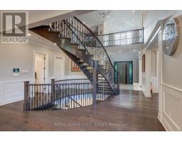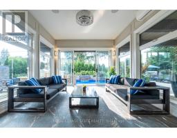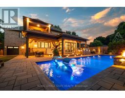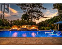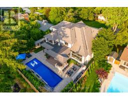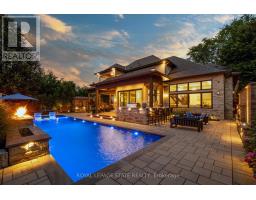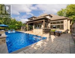 This architectural masterpiece offers 7,000 sq. ft. of luxurious living space with 4+2 bedrooms, 6 bathrooms, an incredible resort-style backyard oasis, and a fully finished basement with separate entrance. Set on an 85 x 135 ft. lot in a mature Ancaster neighbourhood, just one minute to highway access and all Power Centre amenities, this dream home impresses with striking curb appeal, professional landscaping, and an oversized triple garage with 14 ft. ceilings and two car lifts. The grand foyer with a soaring 21 ft. ceiling and curved staircase opens to a sophisticated interior featuring bold millwork, expansive porcelain, and wide-plank hardwood all illuminated by massive windows allowing plenty of natural light. The main level boasts formal living and dining rooms with 12 ft. ceilings, a private office, powder room, mudroom, and a gourmet eat-in kitchen with top-tier appliances. A 4-season sunroom with radiant in-floor heating and a family room with 11 ft. ceiling and stone fireplace create the perfect entertaining spaces. Upstairs, the sensational primary suite includes custom built-ins, spa-inspired 5-piece bath, private balcony, walk-in closet, and a custom dressing room fit for any wardrobe. Three additional bedrooms, all with ensuite baths (heated floors), and bedroom level laundry complete the upper level. The finished lower level offers a recreation area, home theatre, 2 bedrooms, full bath, second laundry, and kitchenette-ideal for family enjoyment or a multigenerational in-law suite. Step outside to a private resort-style retreat with heated saltwater pool (waterfalls, lights, fire features), sunken hot tub, outdoor kitchen with pizza oven, extensive hardscaping, artificial turf, storage shed, and an elite K-Array sound system. Upgrades include Control4 automation, integrated security with cameras, whole-home sound, and dual furnaces, A/Cs, and HRVs for comfort and efficiency. A rare opportunity to own one of Ancaster's most extraordinary residences! (id:61594)