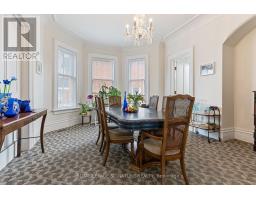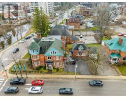 This remarkable 1893 Queen Anne Revival offers a rare blend of architectural beauty and proven financial success. The estate operates as a licensed bed & breakfast, including a fully renovated carriage house featuring two independent rental units. The two buildings are separate structures, providing flexible living arrangements and income across the property. Immediate, transferrable revenue from day one, is a privilege reserved for the discerning owner.Inside the main home, period details are showcased through original stained glass, intricate millwork, a stately newel post, and a signature tower with sweeping river views. The thoughtfully designed spaces cater to both leisure and business guests, with a welcoming library perfect for quiet work, sunlit living and dining rooms ideal for meetings or gatherings, a butlers pantry, large kitchen, and convenient powder room. Upstairs, four oversized bedrooms await, including a spacious primary suite, two generously sized bathrooms, thoughtfully designed to serve both family and guests with ease. Full upper story and roof deck available for conversion. Steeped in history, this home was built for to Dr. W. George Dow, back in 1893, and has since served as a medical office, insurance business, and community gathering place. As a timeless landmark, it stands in the very heart of Owen Sounds vibrant hub, offering the unique ability to live and work under one roof with a strong, proven, lucrative income stream already in place. (id:61594)
