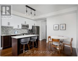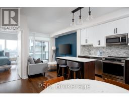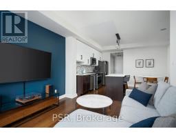 $508.52 MonthlyTurn-key and thoughtfully designed, this west-facing 1-bedroom offers a smart, efficient layout with no wasted space and distinct areas for living, dining and everyday life. Dark flooring grounds the space, while the kitchen pairs white counters and upper cabinetry with contrasting base cupboards for a clean, modern look. A large island, upgraded stainless steel appliances, mosaic tile backsplash and generous storage make the kitchen as functional as it is polished, flowing naturally into proper dining and living areas rarely found in a one bedroom layout. Floor-to-ceiling windows bring in afternoon light and open to a west-facing balcony. The bedroom is well-proportioned and includes a walk-in closet, while in-suite laundry and thoughtful finishes throughout add to the suite's refined, move-in-ready feel. The building is currently undergoing a full renovation of its common areas, with renderings in the listing photos showcasing the updated design and the rare combination of a like-new feel and the space and functionality of an established condo. Set at Queen and Gladstone, this is a low - maintenance home with style, substance and everyday practicality in one of Toronto's most established west-end pockets. (id:61594)