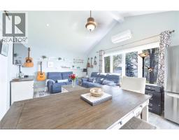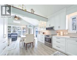 With a total of 1,228 sq ft of insulated, heated and airconditioned living space, this winterized cottage on Conestogo Lake offers more than meets the eye! The main cottage which holds the primary bedroom, main bathroom, kitchen, living and dining areas plus a large mudroom/laundry room measures 761 sq’ with cathedral ceilings throughout and large windows and glass doors overlooking the lake. The bunkie (467 sq’) holds two large bedrooms, a two-piece bathroom and a glassed-in sunroom with a spectacular water view. Drive straight through to the lake, through your newly built (2021) 624 sq’ fully insulated, heated and airconditioned garage with two 9’x12’ remote controlled, doors. The owners have invested over $200,000 in updates and renovations to this property. Inside the main cottage, the custom kitchen is a showstopper featuring quartz countertops and new stainless-steel appliances. The open concept living and dining areas are flooded with natural light and lake views. The spacious primary bedroom is designed for comfort and the gorgeous four-piece bath comes complete with heated floors. Other features include: own well, water filtration system, Generac generator and two 420 propane tanks. With 260 feet of shoreline on a prime point overlooking the widest part of the lake, you'll enjoy panoramic water views and incredible sun/moon rises from your large floating/rolling dock. It’s truly one of the best spots on the lake with a large, private, treed lot, no neighbors on one side, and your own concrete boat ramp. The maintenance-free exterior siding means more time to soak up the lake life and the ample parking means plenty of room for all your visiting family and guests. Located on a private road, a short drive to Kitchener-Waterloo (25 mins) and Listowel (15 mins), Road 10 West is one of the few roads on the lake with a turnaround for snow plowing, allowing for year round access. This property must be seen to be appreciated! (id:61594)