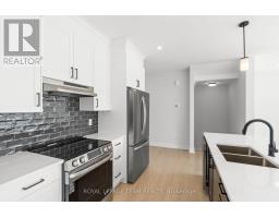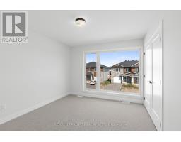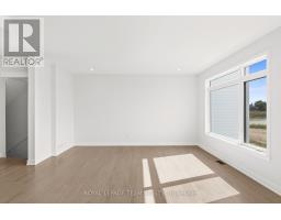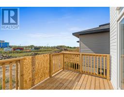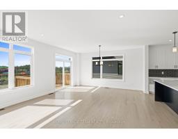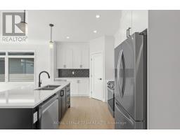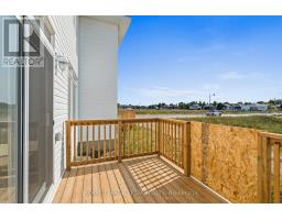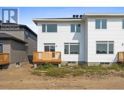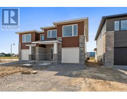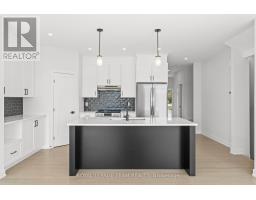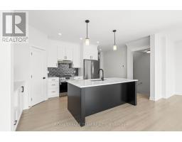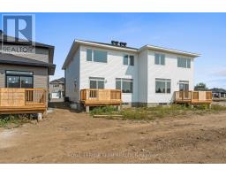 Welcome to Stirling Meadows in Brockville. This newly built semi-detached home offers convenient access to Highway 401, as well as nearby shopping, dining, and recreational amenities. The Wellington Model by Mackie Homes provides approximately 2,125 square feet of thoughtfully designed living space, featuring four bedrooms, three bathrooms, and quality finishes throughout. The main level is bright and inviting, enhanced by recessed lighting and transom windows that fill the space with natural light. The kitchen combines style and function with crisp white cabinetry, a striking backsplash, stainless steel appliances, quartz countertops, and a contrasting black island that serves as a central gathering spot for casual meals. The adjoining dining and living areas open to a sun deck, ideal for outdoor enjoyment, while a powder room and interior access to the oversized single garage add convenience on the main floor. Upstairs, the primary bedroom offers a five-piece ensuite that includes a soaker tub, separate shower, and dual sinks. Three additional bedrooms, a full bathroom, and a dedicated laundry room complete the second level. (id:61594)