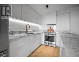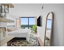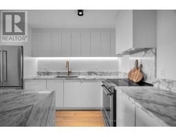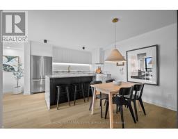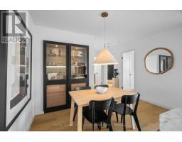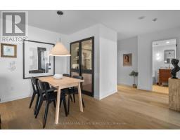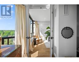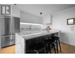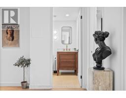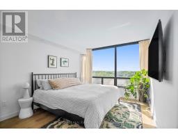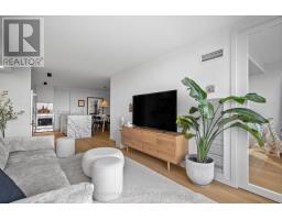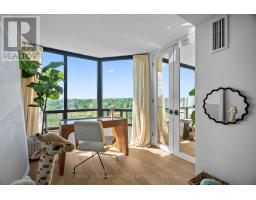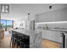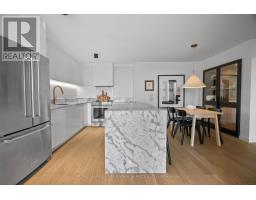 Welcome to a beautifully reimagined suite in the sought-after Barclay Terrace, where thoughtful design meets everyday comfort. This fully renovated residence offers a unique, open-concept layout that maximizes both space and flow, creating an inviting atmosphere that feels as good as it looks. Expansive north-west facing windows frame peaceful treetop views stretching toward Islington Golf & Country Club, filling the home with natural light while offering exceptional privacy. Smooth ceilings and premium hardwood flooring carry throughout, enhancing the suite's clean, modern aesthetic across approximately 1,060 sqft. At the heart of the home, the kitchen is designed to impress and perform, featuring full-sized appliances, a sleek built-in range hood, quartzite surfaces, and a generous waterfall island with abundant storage. Perfectly positioned between the living and dining areas, it's ideal for both casual living and hosting. The dining area includes a custom built-in with glass cabinetry and integrated lighting, comfortably accommodating both intimate dinners and larger gatherings. In the living room, elegant French doors open to a flexible second bedroom or home office, offering versatility for today's lifestyle. The primary bedroom is a calm retreat with room for a king-sized bed, custom shelving, and a refined 3pc ensuite with a walk-in shower. A second full bathroom features an oak vanity, marble countertop, and tub, blending style with practicality. A standout feature is the dedicated laundry room, thoughtfully designed with a large quartzite counter and excellent storage-bringing ease and organization to daily routine. Residents enjoy exceptional amenities including 24-hour concierge, indoor pool and hot tub, sauna, tennis and pickleball courts, squash, fitness centre, library, billiards room, and beautifully maintained outdoor spaces with BBQs and a courtyard. A true sense of community, making Barclay Terrace a place residents are proud to call home. (id:61594)
