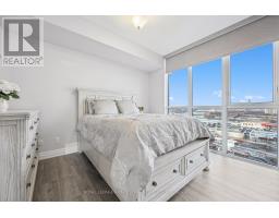 WELCOME TO CRYSTAL CONDOS! IMMACULATE TWO BEDROOM, TWO BATHROOM SOUTH-EAST CORNER SUITE! This exceptionally well-maintained condominium apartment offers nearly 930 square feet of refined living space, complemented by an expansive approximately 100 square foot balcony showcasing unobstructed skyline views. Floor-to-ceiling windows bathe the interior in natural light, enhancing the bright and airy atmosphere throughout. Thoughtfully designed for both everyday living and entertaining, the open concept layout features a spacious living room, a dedicated dining area with walkout to the private balcony, and a gourmet kitchen complete with granite countertops, subway tile backsplash, and stainless steel appliances. The primary bedroom boasts a walk-in closet and a spa-inspired four-piece ensuite. A generous second bedroom, luxurious three-piece bathroom, and convenient in-suite laundry complete the residence. Additional highlights include high-quality wide-plank laminate flooring, 4" baseboards, upgraded sound/heat/light-blocking roller blinds, one underground parking space, and a dedicated storage locker. An additional underground parking space, P2 #121, may be leased for $150 per month. Residents enjoy an impressive collection of resort-style amenities, including a 24-hour concierge, indoor pool and hot tub, sauna, fully equipped fitness centre, yoga studio, library with Wi-Fi workstations, theatre room, billiards and entertainment lounge, party room with full kitchen and dining area, guest suites, an expansive outdoor terrace with BBQs, and ample visitor parking. Ideally located close to grocery stores, Square One Shopping Centre, Heartland Town Centre, schools, parks, public transit, and major highways. A rare opportunity to own a premium corner suite in the heart of Mississauga. (id:61594)