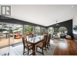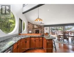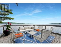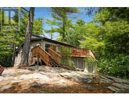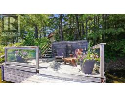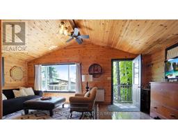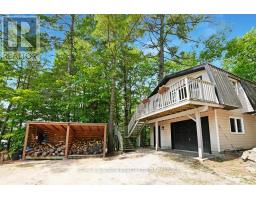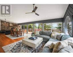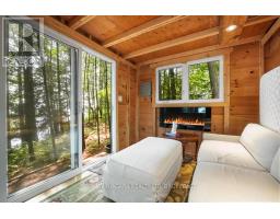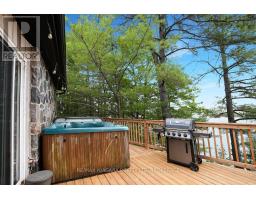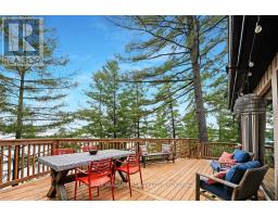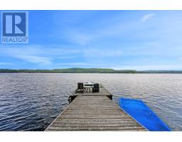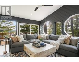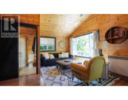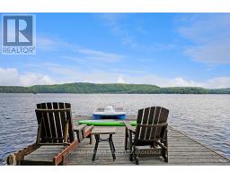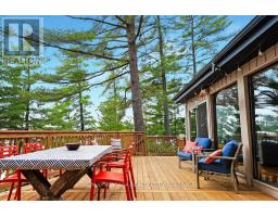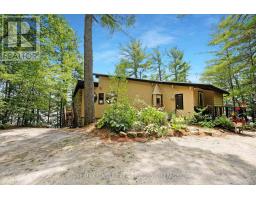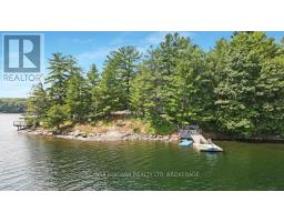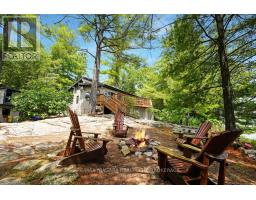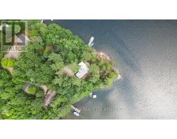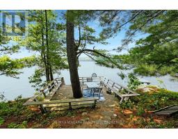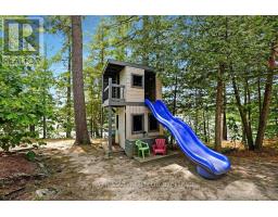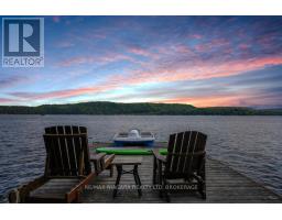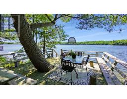 A stunning point lot on 12 Mile Lake, with well over 500' of waterfront and an acre of land plus 4 acres of shared woodland trails behind it. All the sun or shade you could want. Three lake chain for amazing boating, fishing, recreation. This property has all the privacy you've been dreaming of and different buildings for privacy, working and/or separation. Three docks for sun or shade all day and maximum space for family and/or friends. The neighbours' cottages are a good distance away and tucked back, so you don't even know they are there. The water is clear and fresh for swimming and there is deep diving entry from one dock, sandbeach off another and shade into a sand entry for the third. Facing east, south and west for both gorgeous sunrises and sunsets. The main cottage is approximately 1750' feet, winterized, (all season) three bedrooms (one a loft bedroom), two bathrooms (one an ensuite), open concept kitchen, living & dining moving seamlessly to a large deck with hot tub overlooking the lake and property. Kitchen and both bathrooms are renovated, gorgeous stone fireplace in the main living area with sloped ceilings. Stunning distressed hemlock flooring throughout. There is some fabulous "bunkie" space - on the second floor of the two-car garage, cathedral ceilings, recently renovated with a farmhouse feel. Two bedrooms, bathroom, living room and deck. Then there is a cabin with loft bedroom right on the lake. A sauna sits nearby for a nice steam before jumping off the boating dock into deep, clear water. There's also an open yard space - great for sports or activities, a large fire pit area overlooking the water and a beautiful two-story children's playhouse . A dream come true. It must be seen to feel the impact of the beauty and the privacy and to experience the drama of the big lake, colorful views. Incredible Pine trees throughout the property add to the cottage feel and the privacy. (id:61594)