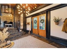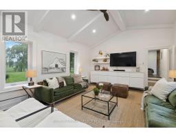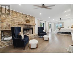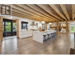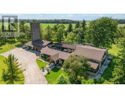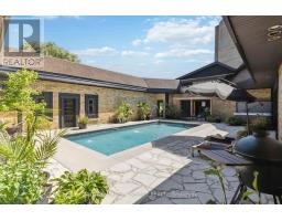 One-of-a-Kind Country Estate - Discover this exceptional 8600 sq ft restored farmhouse in Middlesex County - a rare blend of 1850s charm and modern luxury, just 15 minutes northwest of London. Set on a private, picturesque landscape of just under 3 acres with rolling farmland, mature trees, and oversized ponds, this estate home offers the serenity of rural living with city convenience. The main residence features 4 spacious bedrooms and 3.5 bathrooms, including three en-suites and a rare main-floor suite, ideal for guests or aging parents. The gourmet kitchen is built for entertaining, with a massive island, 48" Smeg gas range, double fridge/freezer, plus a walk-in pantry/laundry room. Enjoy multiple inviting living spaces which include a sunken living room with gas fireplace and pond views, a bright sun-room, cathedral ceilings, custom steel staircase, wine cellar, and seven fireplaces throughout the home. A flexible two-room area currently serves as a hair studio and can easily convert into a home office, gym, or mudroom. An attached 2-bedroom, 1-bath income-generating apartment adds versatility for guests, family, or rental income. Outdoor living is unmatched: a private courtyard with pool and hot tub (2019), a lanai with a fireplace and retractable windscreen walls, and three patios offering year-round relaxation and entertaining. The grand timber frame portico and beautifully landscaped grounds create an unforgettable first impression. Additional features include a 4-bay garage with epoxy floors and man cave, outdoor shed, custom awnings, and a private balcony off the primary suite with sweeping views of the ponds and green space. The property is adorned with mature trees including Weeping Willows, Magnolias, Oaks, and Maples. Truly an ideal setting for families, professionals, or entertainers, this legacy estate provides unmatched privacy, beauty, tranquility and lifestyle. A true dream home - properties like this rarely come to market. (id:61594)