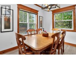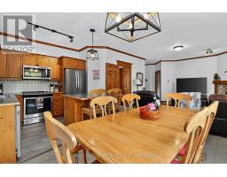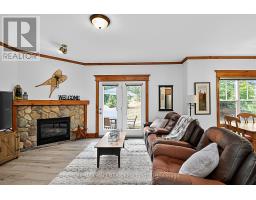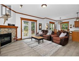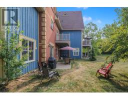 Welcome to Historic Snowbridge, a highly coveted community in the heart of Blue Mountains. This fully furnished, chalet inspired end-unit ground floor townhouse offers an exceptional combination of comfort, convenience and potential for income with zoning allowing for short term accommodations. The bright and spacious open concept layout features 9 foot ceilings, upgraded vinyl plank flooring and rustic crown mouldings throughout. The kitchen is equipped with stainless steel appliances and a large centre island overlooking the dining area and family room with a gas stone fireplace and walkout to patio backing onto a ravine setting, with mountain views. The primary bedroom includes a 4-piece ensuite with a jacuzzi tub, while a second bedroom and additional full bathroom provide comfortable accommodations for family and guests. Additional conveniences include ensuite laundry and dedicated ski locker storage, offering practical functionality. Nestled along the Monterra Golf Course, Snowbridge residents enjoy access to an outdoor pool and beautifully maintained trails in a true four-season resort setting. As part of the Blue Mountain Village Association, owners benefit from privileges including shuttle service to the Village and private beach access on Georgian Bay, while being just minutes to the shops, restaurants, and entertainment of the Village and nearby Collingwood and Thornbury. Ideally located for active lifestyle living, the community offers effortless access to skiing, golf, hiking, biking, beaches, making it an exceptional year-round retreat. Cable & highspeed internet included in the maintenance fee. Hot water tank (2020), air conditioner & air handler (2021), Vinyl flooring (2021). (id:61594)