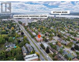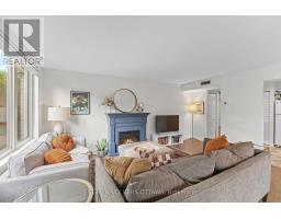 This walkout 2-bedroom, 1-bathroom unit offers nearly 1,000 sq. ft. of bright, comfortable living space with a bungalow-like feel - perfect for dog owners or anyone seeking convenient, low-maintenance living. Ideally located, you'll be within walking distance of Carlingwood Mall (Loblaws, Canadian Tire), Fairlawn Plaza (Shoppers Drug Mart, Pet Valu, LCBO), gyms (Altea, Anytime Fitness), parks, excellent schools, and the shops and restaurants of Westboro. Easy access to Highway 417, multiple transit lines, and the upcoming Sherbourne LRT station. Inside, a spacious foyer opens to an airy, open-concept living and dining area filled with natural light from south-facing windows. A moveable electric fireplace adds warmth and charm, while patio doors extend your living space to a private outdoor retreat surrounded by greenery. The kitchen offers ample cabinetry with room for a small table or hutch for added storage. The primary bedroom includes a generous walk-in closet and blackout curtains, while the second bedroom is perfect as a home office, guest room, or child's bedroom. The large bathroom features double sinks, a shower/tub combo, and a linen closet for extra storage. Custom window treatments installed throughout (2022). Additional highlights include in-suite laundry, underground parking, and a storage locker. Don't miss this fantastic opportunity to own a spacious walkout unit in one of Ottawas most sought-after and evolving communities! (id:61594)