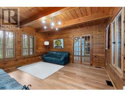 Meticulously maintained 4-bedroom + loft, 2.5-bath, 2-car garage log home is nestled in the sought-after community of Constance Bays Pineridge Estates. Set on a private 1.2-acre treed lot just a short walk to the public beach, this property combines cottage-style charm with modern conveniences, featuring natural gas heating and Bell Fibe high-speed internet. Inside, the main level boasts a spacious country kitchen with breakfast nook, a formal dining room perfect for entertaining, a convenient office nook, laundry with powder room, and an impressive great room anchored by a classic stone wood-burning fireplace with direct access to an oversized screened-in porch/sunroom. Upstairs, discover four generously sized bedrooms with a gas fireplace and two beautifully renovated full bathrooms. The fully finished basement offers even more living space with a large recreation room featuring a stunning stone fireplace, plus a versatile den. Outdoors, enjoy your own private oasis surrounded by towering pines, complete with a fire pit, BBQ area, storage shed, and endless room for family gatherings and outdoor fun. Whether you're seeking a peaceful retreat, a place to raise a family, or the perfect blend of country living with modern comfort. (id:61594)