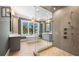 Welcome to a truly exceptional estate offering over 8,234 sq ft of finished living space on an approximately 1-acre lot, where grand scale meets thoughtful design and premium craftsmanship throughout.The home features 10' ceilings on the main floor and 9' ceilings on both the second level and walk-out basement, creating an airy, light-filled atmosphere. With 7 bedrooms and 9 bathrooms, this residence is perfectly suited for large families, multigenerational living, or those who love to entertain. At the heart of the home is a spectacular great room open to above, anchored by a dramatic floor-to-ceiling stone fireplace. The chef's kitchen is a showstopper, equipped with high-end built-in stainless steel appliances, an oversized island, custom backsplash, and direct walkout to the expansive 55' x 16' deck, ideal for indoor-outdoor living. A butler's pantry with prep kitchen adds both elegance and functionality.Retreat to the main-floor primary bedroom which is a private sanctuary featuring a gas fireplace with stone slab surround, walkout to the deck, a spa-like 5-piece ensuite, and a massive walk-in closet complete with a large center island. The main level is rounded out by hardwood flooring, plaster mouldings, and a highly functional laundry room with two sets of washers and dryers. Upstairs, you'll find four generously sized bedrooms, each with its own 3-piece ensuite and walk-in closet, offering comfort and privacy for every family member.The fully finished walk-out basement continues the luxury with two additional bedrooms, each with private ensuites, a large recreation room, fitness room, wet bar and high-end vinyl flooring. A separate 3-piece bathroom with backyard access makes this level ideal for entertaining or poolside plans. Additional highlights incl. Geothermal heating, Mvac central vac with hide a hose, paved driveway with concrete curbs. This one-of-a-kind property delivers luxury, efficiency, and scale in a refined package. An extraordinary home. (id:61594)