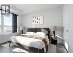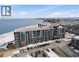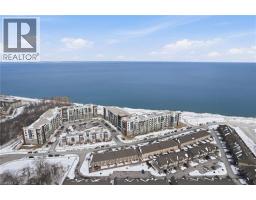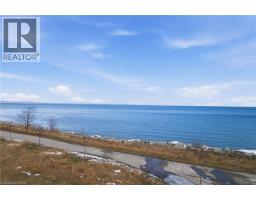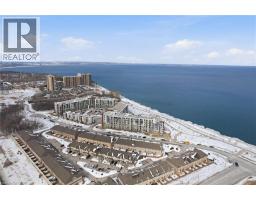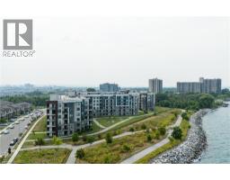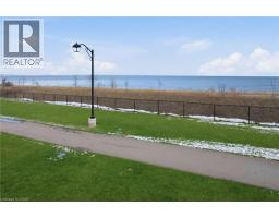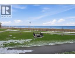 LAKE VIEW! WALKOUT! PET LOVERS! UP TO $10K IN CUSTOM BUYER INCENTIVES! Welcome to this beautifully proportioned, bright 1-bedroom condo, perfectly positioned just steps from Lake Ontario and a secluded beach, with sweeping views toward Burlington and the Toronto skyline. Offering the convenience of a main-floor walkout and a private front-door hallway entry, this home blends condo living with the feel of a ground-level retreat. Freshly painted in a neutral palette, the unit features 9-foot ceilings and a bright, open-concept layout designed to maximize both space and natural light. Warm-toned upgraded laminate flooring flows seamlessly from the living area through the hallway and into the bedroom, with upgraded trim creating a cohesive and inviting atmosphere. Step outside to your private, serene patio and rear lawn area overlooking the lake — an ideal setting for morning coffee, evening cocktails, or outdoor dining with easy access for pet owners. The kitchen showcases quartz countertops, Frigidaire stainless steel appliances, a sleek smooth-top stove, Blanco double under-mount sink, pull-down faucet, and stylish backsplash. A breakfast bar provides space for casual dining or entertaining, while custom blinds throughout add comfort and privacy. The bedroom offers flexibility for furniture placement, complemented by a large window and generous closet. Just across the hallway, the well-appointed 4-piece bathroom features updated porcelain tile, a custom glass shower wall, and a conveniently located, separated in-suite laundry area. Enjoy excellent building amenities, including a party room, exercise room, rooftop terrace, bike storage, and secure underground parking, along with direct access to scenic waterfront trails and a peaceful public beach. Situated with quick access to major commuter routes, Confederation GO, and everyday conveniences. Whether you’re a first-time buyer, downsizer, or investor, this turnkey lakefront condo delivers exceptional value. (id:61594)