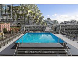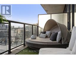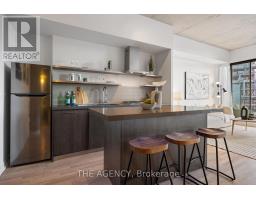 $671.35 MonthlyOffer anytime! Step into the epitome of King West luxury at Fashion House Condos! One of Downtown Toronto's most sought-after buildings, this boutique gem radiates sophistication from the entrance onward. Located atop 'The Keg Steakhouse' and 'Majesty's Pleasure' social beauty club, and across from the iconic 'Rodney's Oyster House' and 'Mademoiselle Raw Bar & Grill', this is Fashion District living at its finest-- surrounded by the vibrant nightlife and renowned culinary experiences of King West. Did you know 'Sir Elton John' owns the penthouse across the street? This south-facing unit is flooded with natural light and boasts forever-unobstructed views of the district and the CN Tower, visible from both the balcony and bedroom. Enjoy open-concept, loft-style, living with 10' exposed concrete ceilings and pillars, and floor-to-ceiling windows. Step out onto a cabana-style balcony overlooking the buildings signature infinity pool- perfect for poolside vibes from the comfort of your home. With a gas BBQ hookup, deck tiles, and a luxurious round daybed, your outdoor escape awaits. Inside, discover a modern, open-concept interior with a practical layout. The European-style chef's kitchen features open top shelving, high-end stainless-steel appliances, a gas cooktop, and a spacious waterfall island. The primary bedroom, fits a king bed, offers a large walk-in closet and stunning views. The spacious den comfortably fits a queen-size bed and includes built-in storage. Both the bedroom and the den come with privacy sliding doors. The rarely available 5-piece bathroom provides the luxury of both a shower stall and a bathtub. Top-notch amenities include an infinity pool and cabanas connected to a state-of-the-art gym and a party room. TTC at your doorstep, 5 minutes by bike to the Toronto Waterfront and TikiTaxi station-- your King West oasis awaits! The unit comes with a parking spot and a locker, very close to each other. Heat and water included in the maintenance fees. (id:61594)