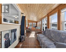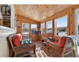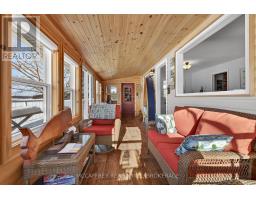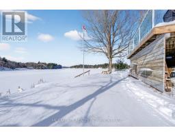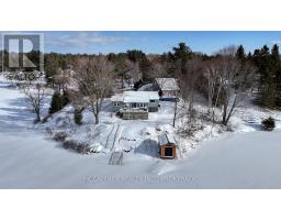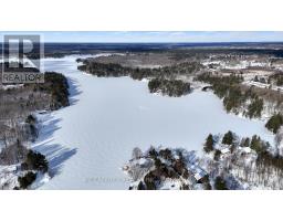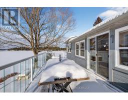 Welcome to year-round lake living on the tranquil shores of Elbow Lake, offering just over 180 feet of pristine waterfront with no public access-ensuring exceptional privacy, peaceful surroundings, outstanding fishing right off the dock, and unforgettable sunset views. This beautifully renovated bungalow is completely move-in ready and is complemented by an oversized detached two-car garage with an upper loft awaiting your finishing touches, plus an updated boathouse. Step inside to a generously sized mudroom, perfect for all seasons, which flows into a stunning sunroom featuring wraparound windows and patio doors that lead to a deck overlooking the water. The open-concept living and dining area is ideal for entertaining and seamlessly connects to a modern kitchen with elegant quartz countertops. The home offers a spacious Primary bedroom with a walk-in closet and 2-piece ensuite, a comfortable second bedroom, and a stylish 4-piece main bathroom. Conveniently located close to amenities, schools, and the popular K&P Trail, this exceptional property offers the perfect blend of comfort, convenience, and natural beauty-ready for you to settle in and start enjoying the very best of lakefront living. (id:61594)