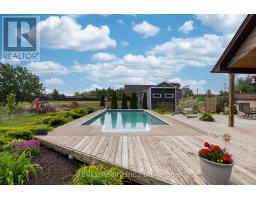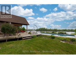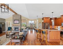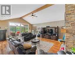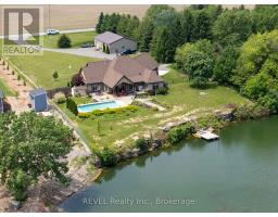 Located just outside the City of Port Colborne with sweeping Wainfleet views, this beautifully appointed bungalow backs onto the serene Port Colborne Quarry Pond and includes .5 acres of owned underwater land, offering an unmatched setting for water recreation and peaceful living. The home blends cottage charm with modern comfort, featuring 4 bedrooms and 2 bathrooms, including a private primary suite overlooking the pond with a luxurious 5-piece ensuite boasting a tile walk-in shower, soaker tub, and walk-in closet. The open-concept main floor is designed for both relaxation and entertaining, with vaulted ceilings in the living room, a striking stone gas fireplace, and large windows that frame the stunning quarry views. The kitchen is well-equipped with quartz countertops, a large island with bartop seating, stainless steel appliances, and a generous pantry, flowing seamlessly into the living and dining areas with rich hardwood flooring and real wood doors throughout. Two additional main-floor bedrooms, a full 4-piece bathroom, and an office that can serve as a fourth bedroom provide ample space for family or guests. A large covered rear deck with a vaulted roof extends your living space outdoors, overlooking an 8-year-old inground pool with a new pump and filter ideal for summer enjoyment. Additional highlights include a main-floor laundry room, an extra-large attached 2-car garage, a 35x40 ft detached shop with full vehicle lift and air compressor, and a 5-ft height unfinished basement for storage. With a cistern water supply and a location that offers a true Muskoka-like experience just minutes from all local amenities, this home delivers the ultimate blend of lifestyle, privacy, and practicality. (id:61594)