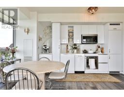 Welcome to this beautifully upgraded 2-bedroom, 2-bathroom condo offering 920 sq ft (including balcony) of thoughtfully designed living space with southwest exposure and sweeping views of Lake Ontario. Bright and modern, the open-concept layout showcases a sleek kitchen with a built-in coffee bar featuring porcelain counters and backsplash, an integrated flush fridge, flush cooktop, and undermount sink for a seamless designer look.The spacious living area opens to a private balcony, recently enhanced with custom paver tiles and outdoor pot lights perfect for entertaining or relaxing at sunset. Both bedrooms feature upgraded light fixtures with modern bedside sconces, creating a warm and elegant ambiance. With two generously sized bedrooms, the home is ideal for professionals or couples needing a dedicated work-from-home space. Added conveniences include in-suite laundry, two storage lockers, and a parking spot near the elevator with EV charging rough-in.The building offers resort-style amenities: outdoor pool, sauna, fully equipped gym, yoga studio, pet wash station, and 24-hour concierge and security.Unbeatable location steps from Mimico GO Station for an easy downtown commute, minutes to major highways, and a short walk to the waterfront trail for biking, running, or lakeside strolls. A perfect balance of urban convenience, lakeside tranquility, and work-from-home practicality. (id:61594)