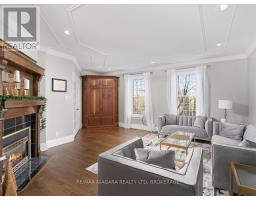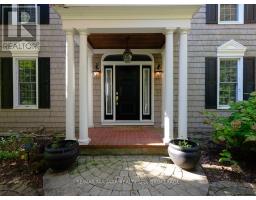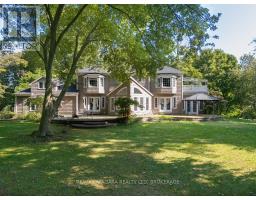 Camelot Hill Estate: A custom-built Georgian Colonial set on 1.2 acres of manicured, tree-lined grounds overlooking winding Lakeshore Road West, just outside the lakeside town of Port Colborne. With over 3,700 sq ft of finished living space, the home commands a striking hillside presence while offering privacy and a peaceful setting. The columned entrance opens to a grand foyer with a sweeping oak staircase, leading into formal living and dining rooms defined by classic architectural details. The main floor also features a private office, a bright Florida room with French doors to the terrace, and a comfortable family room-well suited for both everyday living and entertaining.The kitchen was updated in 2022 with new cabinetry and flooring, blending traditional style with modern function, and includes granite countertops, high-end appliances, and a breakfast area overlooking the grounds. Upstairs, there are 4-5 generous bedrooms and 2.5 updated bathrooms. Restored hardwood floors, two gas fireplaces, and abundant natural light highlight the home's timeless character throughout.The lower level is unfinished, offering excellent potential to further expand the living space. Major updates include a new roof (2021), new windows and doors (2022), garage doors, lighting, and a new water system. A dedicated internet tower provides reliable high-speed connectivity.The landscaped grounds feature terraces, gardens, and a heated garden shed-ideal for relaxing, gathering, or creative use. 10187 Lakeshore Road is a rare estate offering a serene wooded setting, strong presence, and quick possession. (id:61594)