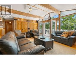 Welcome to Greystone!! A spectacular, 4 Season walkout bungalow with a fully finished basement Perfect for large gatherings, situated on a gently sloping 119 waterfront lot. Over 3/4 of an Acre backing onto the Haliburton Forest and Wildlife with year round events. An incredible open concept kitchen with large dining area and Family Room. 3 Bathrooms, 4 bedrooms, 2 additional rooms for work at home offices. Granite counters, 2 Fridges, slide in Stove & Dishwasher with a spacious entertainers bar. Step outside from the family room to a picturesque full wrap around deck. Expansive dock for diving into the deep weedless water. Six person Artic Spa hot tub, Phantom Screened, retractable sunroom (2018) to enjoy nature's sounds or sit at your private fire pit. The 2 Storey 25 x 50 foot garage has room for all the toys, equipped with propane heat source and wood stove to gather after winter activities. The upper level provides ample storage for all of your cottage essentials along with a gym. Kennisis Lake boasts an active community with amenities like a marina with pickleball, food drink concession and live entertainment. Embrace the serenity of cottage life and create memories at this splendid cottage on Little Kennisis Lake. (id:61594)