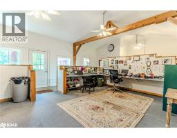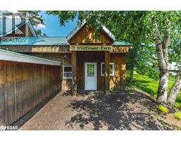 A TRUE LIVE-WORK PROPERTY WITH A RETAIL STORE, OFFICE, MULTIPLE OUTBUILDINGS & OVER 95 ACRES TO GROW YOUR VISION! This picture-worthy property looks like it leapt off the pages of a gardening magazine, offering over 95 acres of stunning land with a rare mix of A, RU, EP and GC zoning that supports residential living, agricultural operations and commercial uses. Situated directly on high-traffic Highway 12, it’s a golden opportunity to live, work and grow in one unforgettable location. A purpose-built retail store on-site supports a variety of business ventures, while two double-sided billboards offer added income potential. The 2-storey residence is a showpiece of charm and craftsmanship, presenting cathedral ceilings, pot lights, African mahogany wood flooring, and a stunning four-season sunroom featuring a brick accent wall and views of the surrounding grounds. The custom kitchen features solid wood cabinetry paired with newer countertops and a propane gas stove. The functional layout features a main floor bedroom, a main floor laundry room, and a main floor 3-piece bathroom, while the upper level offers a spacious loft and two additional bedrooms, each served by a second 3-piece bathroom. Appreciate the comfort of central air, a propane furnace, and owned utilities, including the water heater and softener. Multiple usable outbuildings include a detached garage, drive shed, seed drying building, and a classic bank barn, with yard hydrants still in place from the former greenhouse operations. Board and batten siding, a steel roof, a newer deck, mature trees and blooming wildflowers all contribute to the showstopping curb appeal. An attached office with a bathroom offers flexible space for home-based or farm-related business. This is not just a property; it’s a lifestyle opportunity, a creative canvas and a rare find that doesn’t come along twice. (id:61594)