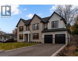 Crafted with exceptional attention to detail and completed in 2025 (Tarion warranty), this custom two-storey luxury home offers nearly 6,000 sqft. of finished living, 5+1 bedrooms, 6 total baths, and a contemporary transitional design blending sophistication with family-friendly functionality. Situated on a 75 x 105 ft lot in Ancaster’s Nakoma neighbourhood, it features striking curb appeal with a stone-and-stucco exterior and a 2.5-car triple tandem garage. Inside, soaring 9 ft ceilings on all three levels, wide-plank white oak hardwood, 8 ft solid core doors, 9 baseboards, and oversized windows create a sense of grandeur. The 19-ft great room showcases floor-to-ceiling windows and a 42 gas fireplace flanked by custom cabinetry. A main-floor office with built-ins, formal dining room, and powder room provide elegant, purposeful spaces, while the dining table converts into a pool table for dual-purpose entertaining. The gourmet kitchen features black cabinetry, a 9' x 5' waterfall quartz island, full-slab quartz backsplash, champagne and honey bronze fixtures, Bertazzoni appliances, and a walk-in pantry and servery with black stainless-steel sink. Adjacent are the mudroom/laundry with garage entry and a main-level bedroom with ensuite. Upstairs, four bedrooms each have ensuite access, including a primary retreat with 10 ft tray ceiling, oversized walk-in closet, linear fireplace, and spa-inspired 5-piece ensuite with heated floors. The finished lower level offers 9 ft ceilings, oversized windows, sixth bedroom, full bathroom, linear fireplace, and endless possibilities. Additional features include radon mitigation, 200-amp service, hardwired security system, and DryCore subfloor. Outside, the back patio provides a starting point for a dream outdoor space, with a pre-approved building permit for an in-ground pool and gas lines for BBQ. Centrally located, this home offers walkability to schools, parks, shops, and quick access to Hwy 403. (See full list of features.) (id:61594)