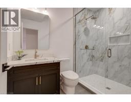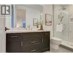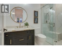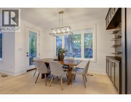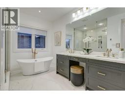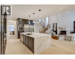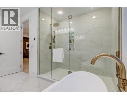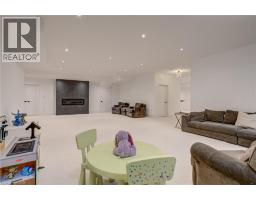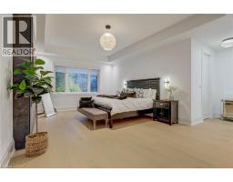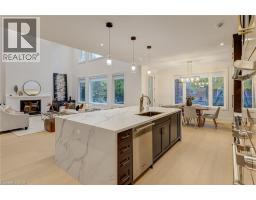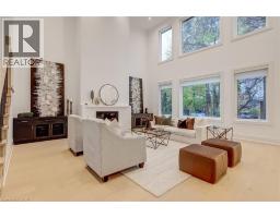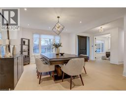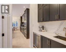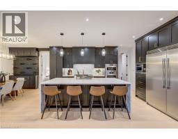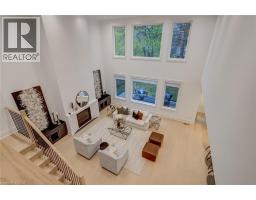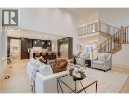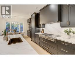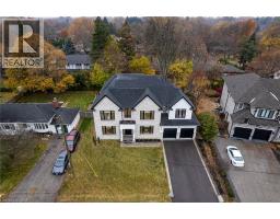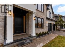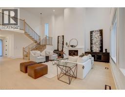 Crafted with exceptional attention to detail and completed in 2025 (Tarion warranty), this custom two-storey luxury home offers nearly 6,000 sqft. of finished living, 5+1 bedrooms, 6 total baths, and a contemporary transitional design blending sophistication with family-friendly functionality. Situated on a 75 x 105 ft lot in Ancaster’s Nakoma neighbourhood, it features striking curb appeal with a stone-and-stucco exterior and a 2.5-car triple tandem garage. Inside, soaring 9 ft ceilings on all three levels, wide-plank white oak hardwood, 8 ft solid core doors, 9 baseboards, and oversized windows create a sense of grandeur. The 19-ft great room showcases floor-to-ceiling windows and a 42 gas fireplace flanked by custom cabinetry. A main-floor office with built-ins, formal dining room, and powder room provide elegant, purposeful spaces, while the dining table converts into a pool table for dual-purpose entertaining. The gourmet kitchen features black cabinetry, a 9' x 5' waterfall quartz island, full-slab quartz backsplash, champagne and honey bronze fixtures, Bertazzoni appliances, and a walk-in pantry and servery with black stainless-steel sink. Adjacent are the mudroom/laundry with garage entry and a main-level bedroom with ensuite. Upstairs, four bedrooms each have ensuite access, including a primary retreat with 10 ft tray ceiling, oversized walk-in closet, linear fireplace, and spa-inspired 5-piece ensuite with heated floors. The finished lower level offers 9 ft ceilings, oversized windows, sixth bedroom, full bathroom, linear fireplace, and endless possibilities. Additional features include radon mitigation, 200-amp service, hardwired security system, and DryCore subfloor. Outside, the back patio provides a starting point for a dream outdoor space, with a pre-approved building permit for an in-ground pool and gas lines for BBQ. Centrally located, this home offers walkability to schools, parks, shops, and quick access to Hwy 403. (See full list of features.) (id:61594)