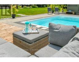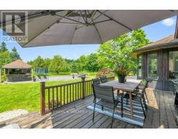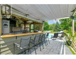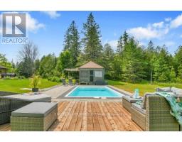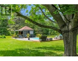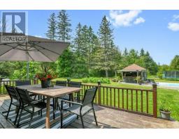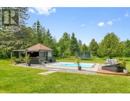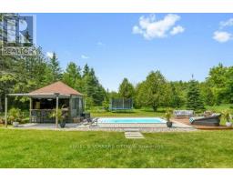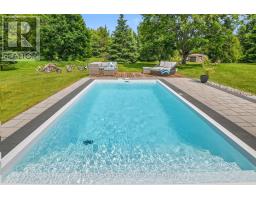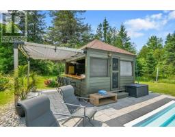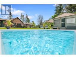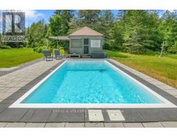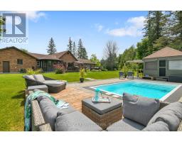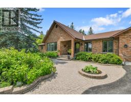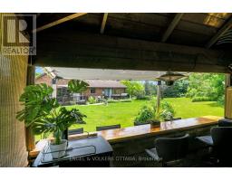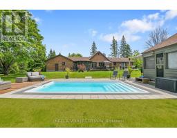 A handsome all-brick bungalow with nearly 500 feet of frontage, just minutes from Hwy 17 and the village of Almonte. Spacious and well laid out, it features a vaulted family room with a stunning fireplace and mantle, and generously sized bedrooms. The rear of the home is filled with afternoon light from large windows overlooking the gardens, newer saltwater pool (2022), and the 5-acre lot with three outbuildings and a summer cabana for poolside entertaining. A hot tub off the primary bedroom deck offers a private retreat. In winter, enjoy snowshoeing and snowmobiling across the acreage. The kitchen is designed for function, with two refrigerators and ample prep space, while the breakfast area provides sight lines to the family room and overlooks the pool through a bay window. A large formal dining room is ideal for entertaining. The lower level features a sports club with a full bar, games area, and gas fireplace. The living room/den serves as a 4th bedroom or home office.Additional unfinished space offers storage and workshop potential. The home is equipped with a new well, pressure tank, full duct cleaning,- all updated in 2021. Septic was pumped June 2025; inspection in spring 2025 indicates several more years of life with proper maintenance. Roof and mechanicals updated in 2018, interlock landscaping in 2017, granite counters and backsplash in 2020, ensuite and hardwood floors in 2019. Interior repainted in 2025. Upgraded main bath in Spring 2025.SELLER INSTALLING NEW WINDOWS AND NEW GARAGE DOORS.Pool professionally closed for the season by Okeanos. (id:61594)