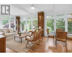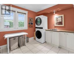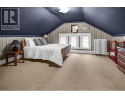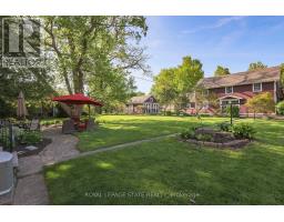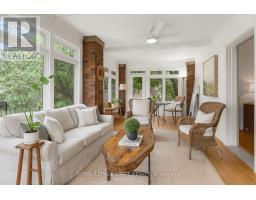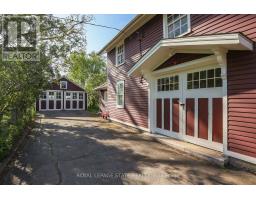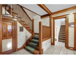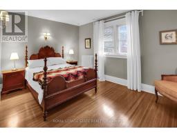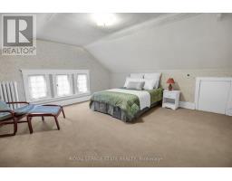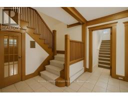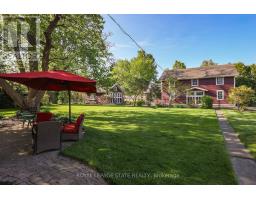 WELCOME TO ONE OF GRIMSBY'S MOST ICONIC HOMES -an extraordinary residence set on a spectacular 128 x 230-foot lot with direct access to Centennial Park, just a short walk to downtown and the highly ranked Nelles Public School, rated #1 in Ontario by the Fraser Institute. This stately all-brick 3-storey home has been lovingly maintained by the same family for over 41 years and offers 3,575 square feet of timeless charm, warmth, and architectural detail, including rich custom woodwork that greets you the moment you step into the grand center hall plan and wood-paneled den. The open-concept living and dining rooms feature recently updated hardwood floors and a cozy fireplace, creating the perfect setting for entertaining. At the heart of the home, the kitchen offers a breakfast bar, a butler's pantry with built-in glass cabinetry, and a 2-piece powder room, all leading to a stunning 280 square foot sunroom with sweeping views of the beautifully landscaped grounds. Upstairs, the primary suite includes a private balcony with breathtaking Niagara Escarpment views, a 3-piece ensuite with soaker tub and heated floors, and is complemented by three additional spacious bedrooms, a modern 3-piece bathroom with glass shower, and convenient second-floor laundry. With two staircases, this level also offers excellent potential for an in-law suite. The third floor includes two more bedrooms and a large storage closet, while the lower level provides ample storage and a flexible recreation or fitness room. Completing this incredible offering is a 2,150 square foot, 2-storey carriage house or workshop, currently outfitted as a woodworking space with hydro and propane heat, and ideal for conversion into an accessory dwelling unit (ADU) or potential back lot severance. The exterior features manicured gardens, a tranquil waterfall feature, and a double detached garage. This is a rare opportunity to own a landmark property that seamlessly blends historic elegance with modern convenience. (id:61594)