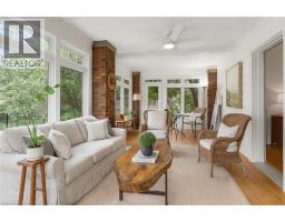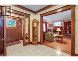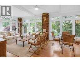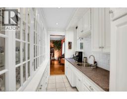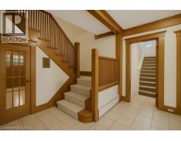 WELCOME TO ONE OF GRIMSBY’S MOST ICONIC HOMES —an extraordinary residence set on a spectacular 128 x 230-foot lot with direct access to Centennial Park, just a short walk to downtown and the highly ranked Nelles Public School, rated #1 in Ontario by the Fraser Institute. This stately all-brick 3-storey home has been lovingly maintained by the same family for over 41 years and offers 3,575 square feet of timeless charm, warmth, and architectural detail, including rich custom woodwork that greets you the moment you step into the grand center hall plan and wood-paneled den. The open-concept living and dining rooms feature recently updated hardwood floors and a cozy fireplace, creating the perfect setting for entertaining. At the heart of the home, the kitchen offers a breakfast bar, a butler’s pantry with built-in glass cabinetry, and a 2-piece powder room, all leading to a stunning 280 square foot sunroom with sweeping views of the beautifully landscaped grounds. Upstairs, the primary suite includes a private balcony with breathtaking Niagara Escarpment views, a 3-piece ensuite with soaker tub and heated floors, and is complemented by three additional spacious bedrooms, a modern 3-piece bathroom with glass shower, and convenient second-floor laundry. With two staircases, this level also offers excellent potential for an in-law suite. The third floor includes two more bedrooms and a large storage closet, while the lower level provides ample storage and a flexible recreation or fitness room. Completing this incredible offering is a 2,150 square foot, 2-storey carriage house or workshop. The exterior features manicured gardens, a tranquil waterfall feature, and a double detached garage. This is a rare opportunity to own a landmark property that seamlessly blends historic elegance with modern convenience. (id:61594)