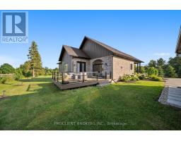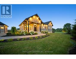 MUST SEE VIRTUAL TOUR - CLICK MULTIMEDIA - Contemporary elegance meets estate living. Situated on a beautifully manicured 1.11-acre lot, this custom-built 2022 bungalow delivers nearly 5,000 sqft of meticulously designed living space, with 5 beds, 5 baths, and an oversized 3-car garage. Just 3 minutes from Hwy 401, this luxury residence offers seamless access while surrounded by privacy and natural beauty. Inside, you'll find 10ft flat ceilings, solid 8ft doors, and refined craftsman-style millwork throughout. The designer kitchen is a showpiece with a massive quartz island (4x9ft), floor-to-ceiling custom cabinetry, and premium built-in appliances. Ideal for everyday living and upscale entertaining. The great room stuns with a 17ft cathedral ceiling, exposed wood beams, a 42" Napoleon fireplace, built-inParadigm surround sound, and oversized patio doors leading to a glass-railed composite deck. A stylish family room offers a second 72" fireplace and in-ceiling audio for immersive ambiance. The primary suite isa private sanctuary with its own fireplace, custom walk-in closet, luxury ensuite, and French doors to the rear deck. Every bedroom on the main floor includes built-in audio and custom closets. The fully finished 9ft ceiling basement redefines modern living with engineered hardwood, a custom-built library with ladder, wet bar, and two spacious bedrooms each with its own ensuite. At its heart is a $100K+ professionally built11-channel 8-seater home theatre, fully insulated for premium acoustics. Outdoors, the property is a masterpiece: two composite decks with gas hookups, landscape lighting, a fire pit, volleyball setup, and an apple & pear orchard, complemented by fruit trees, berry patches, and grape vines. The garage is EV ready(for 2), fully insulated, with premium carriage-style doors, built-in racks, and Pro-slat tool walls ideal for car lovers or hobbyists. This is more than a home, its an experience. A retreat. A lifestyle. And it's ready for you. (id:61594)